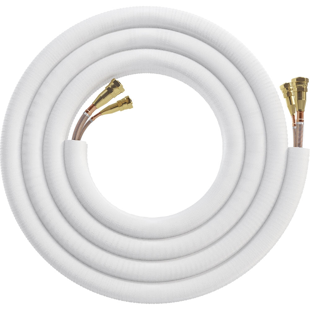 This MrCool Universal Quick Connect pre-charged line set features screw-on Quick Connect valves that ensure a secure, leak-proof connection. Its kink-resistant construction helps protect against accidental bending during installation. Wrapped in 'Gator-Flextra' UV protective insulation, it safeguards against efficiency loss while shielding the line set from sun exposure, weather conditions, and rodents.